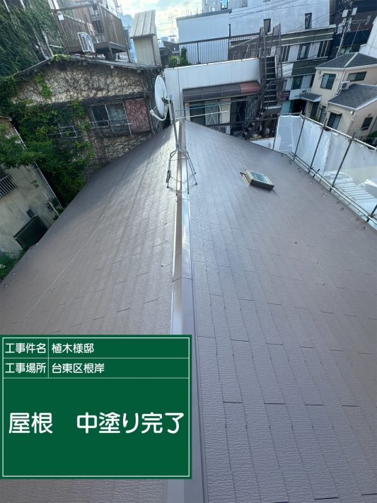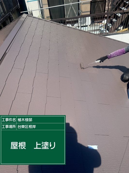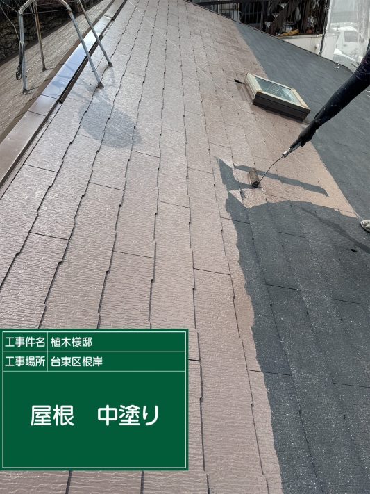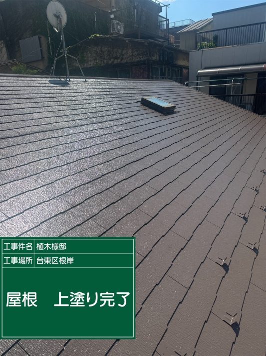 屋根を高圧洗浄してからエスケー化研の高反射率遮熱塗料であるクールタイトSiを3回塗り仕上げいたしました。